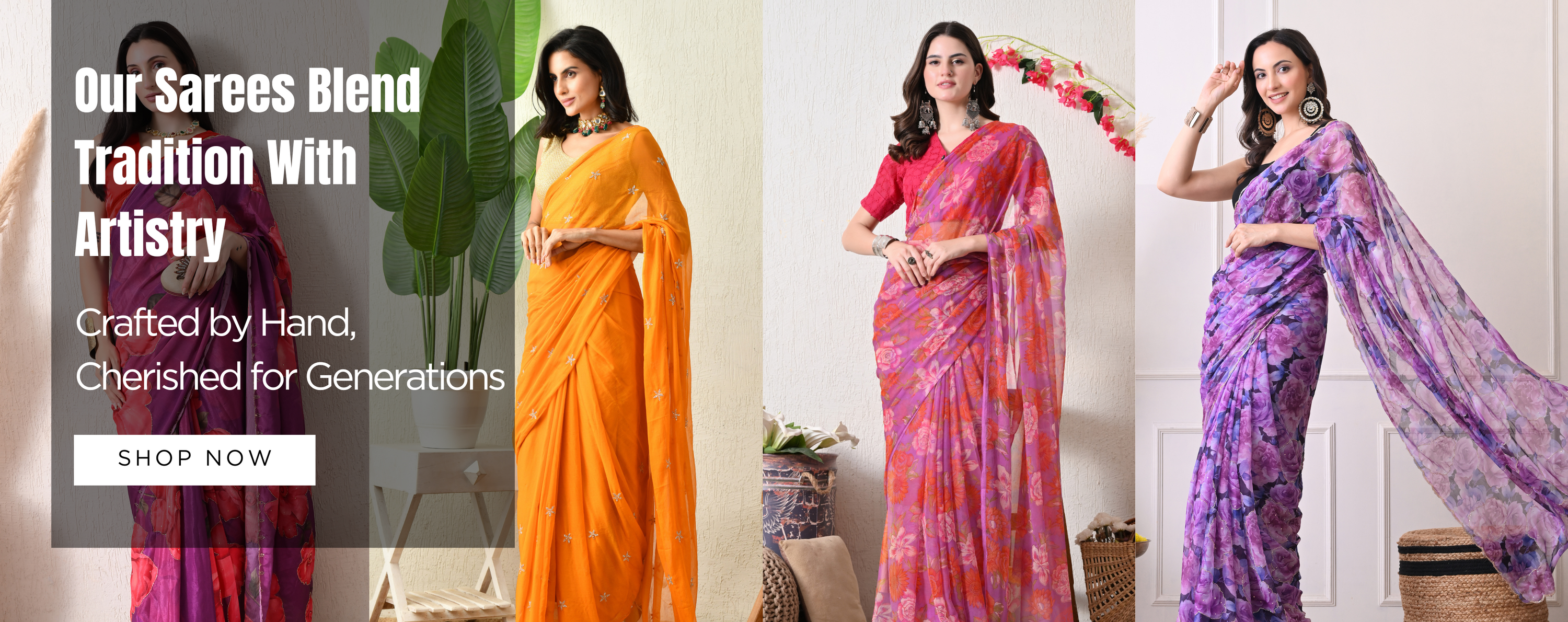 House of Chiffon is a luxury fashion label specializing in pure chiffon sarees, hand-painted crepe suits, and bespoke drapes. Each piece blends timeless tradition with modern artistry, crafted for women who value elegance and individuality. From delicate hand embroidery to vibrant tie-dye, our collections celebrate Indian craftsmanship with a contemporary touch.